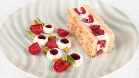 - Mousse noisette praliné, crème meringue et chantilly vanille