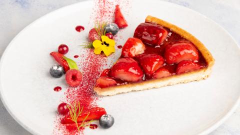 - Lamelles de pommes déposées en forme de rose et purée de pommes fondantes