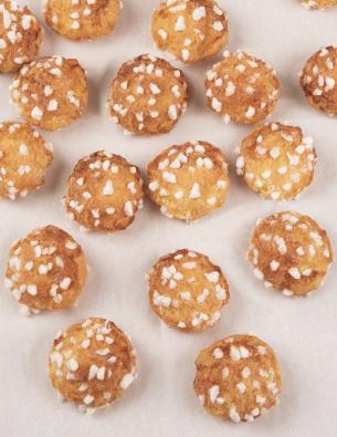 All butter choux pastry dough made with eggs, sugar grains. (Frozen raw: 10 sheets of 54 chouquettes)