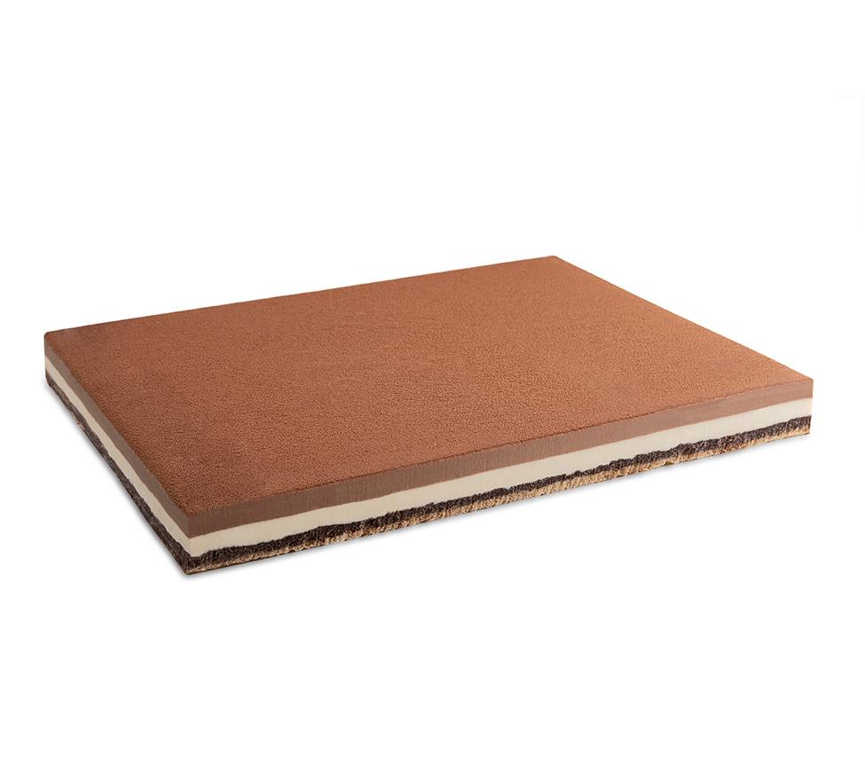 Sponge cake, crunchy layer of dark chocolate, white chocolate mousse, milk chocolate mousse, velvet decoration (31% chocolate).