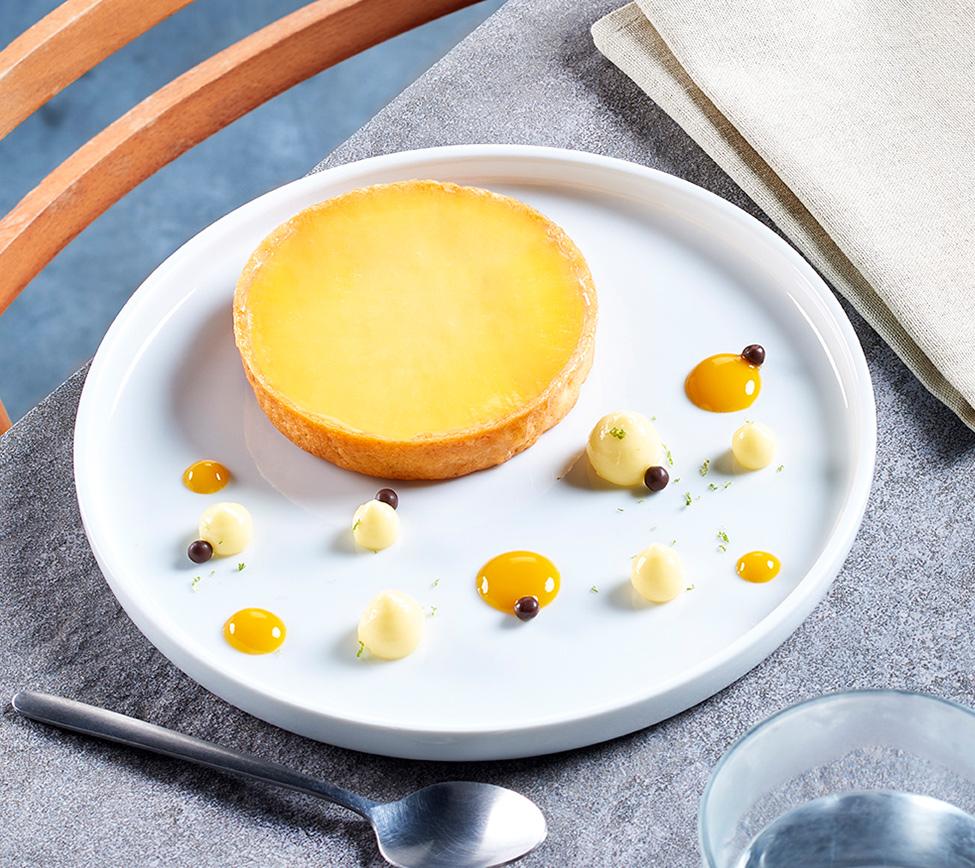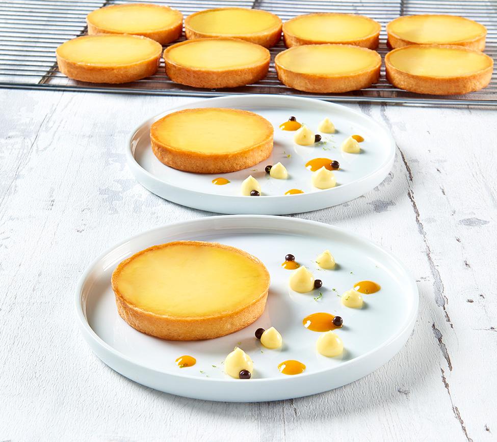 All butter shortcrust pastry, lemon cream with eggs.
