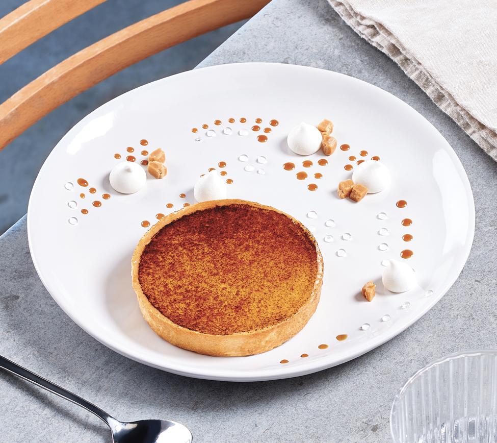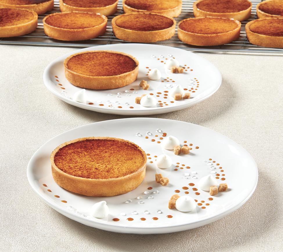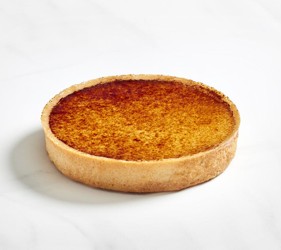 All butter shortcrust pastry, custard filling "crème brûlée" flavour and eggs.