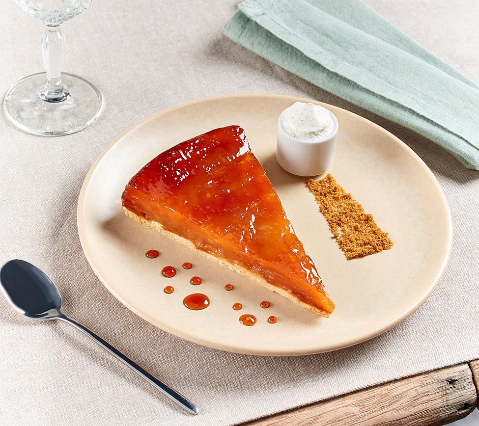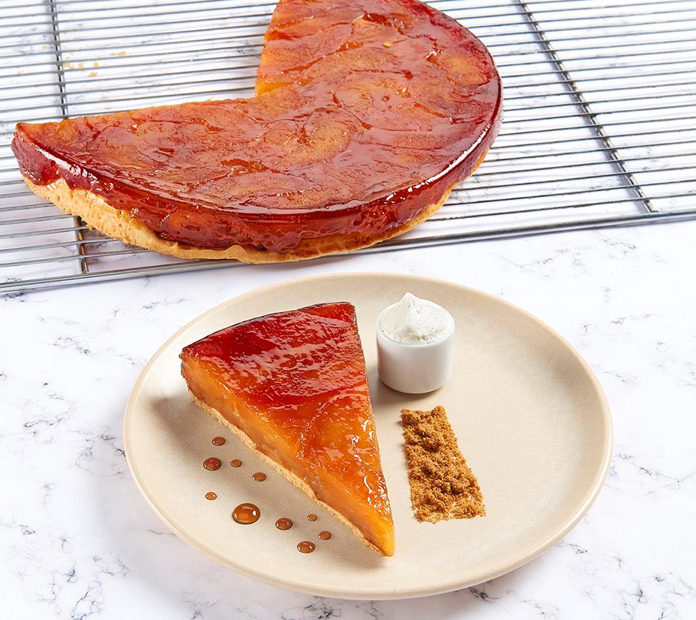 All butter shortcrust pastry, fresh apples cut into quarters and natural caramelisation when the sugar, butter and apples are baked. (80% apple)
