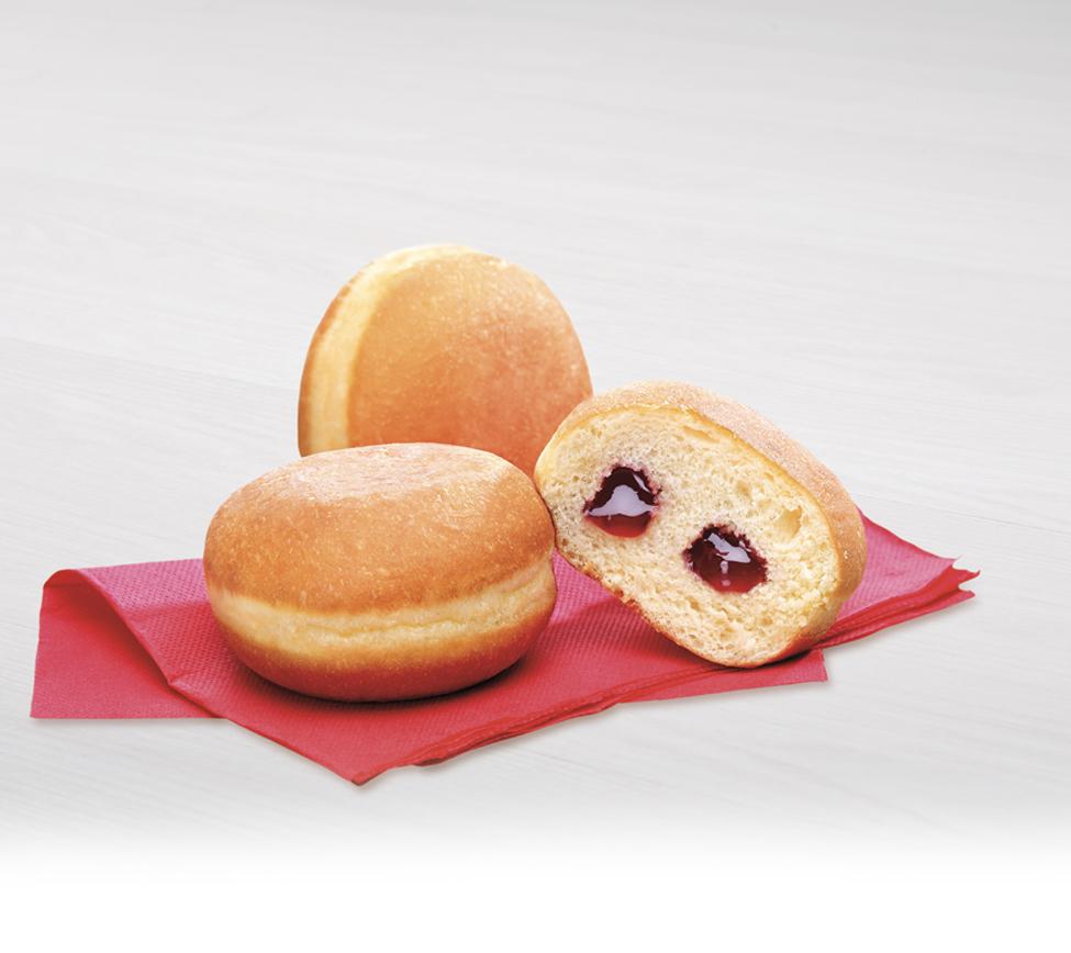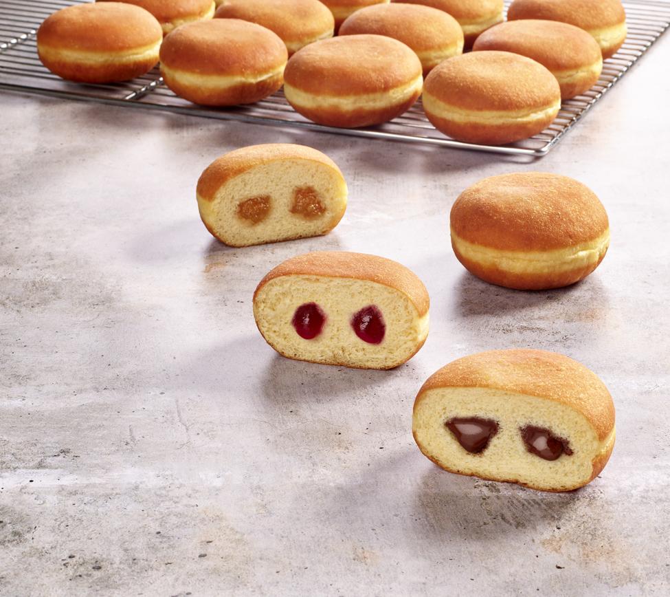 Pâte à beignet, fourrage à la framboise. (25% de purée de framboises)