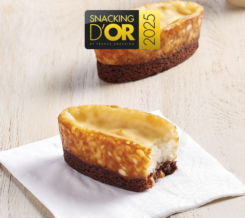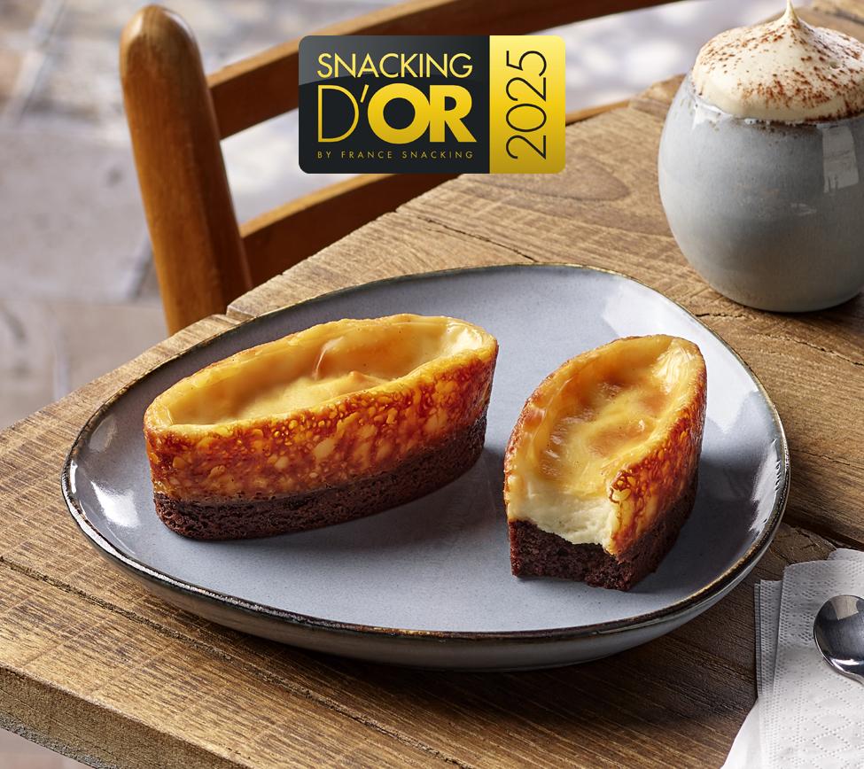 Brownie fondant aux éclats de noix croquants, surmonté d'une crème flan onctueuse au bon goût de vanille.